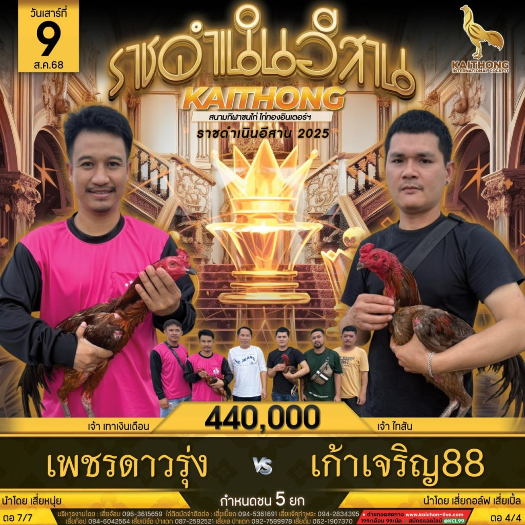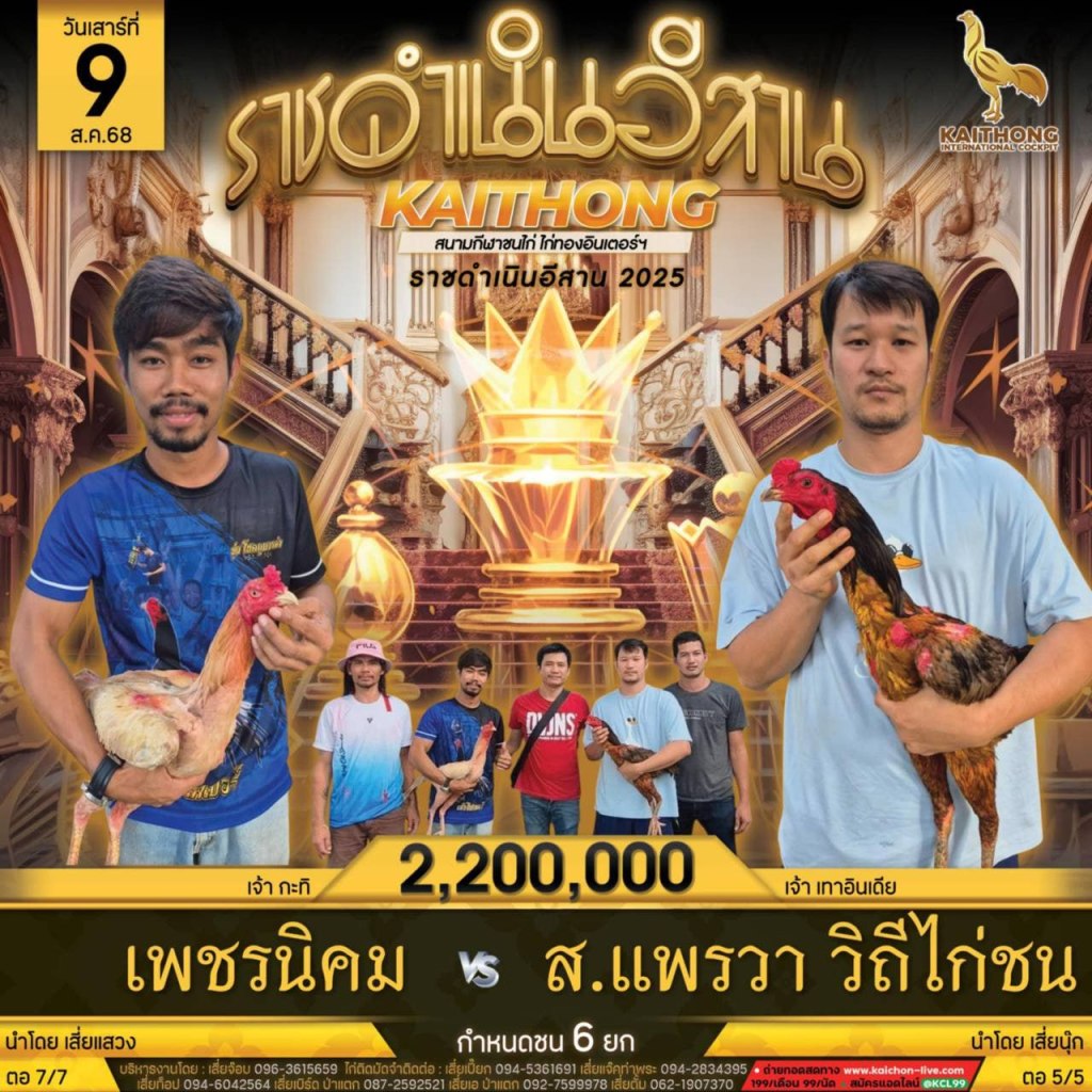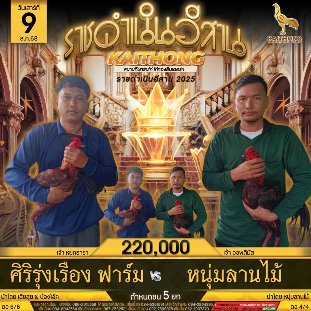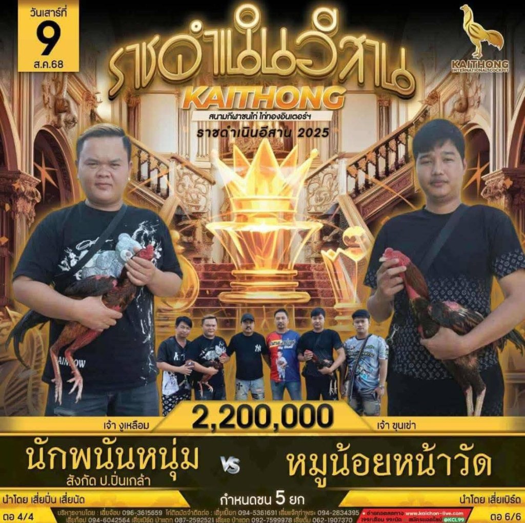 สนามไก่ชนทองอินเตอร์ วันที่ 9 สิงหาคม 2568