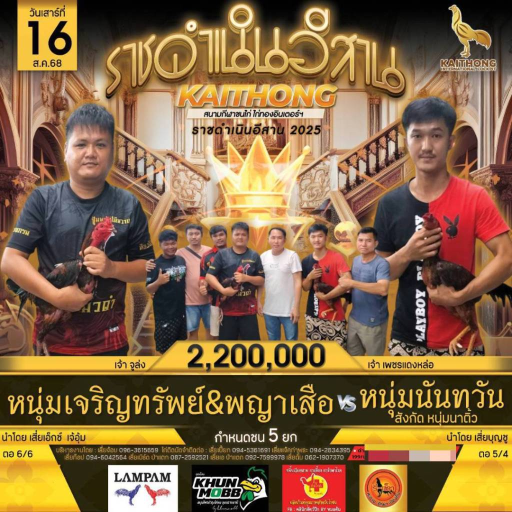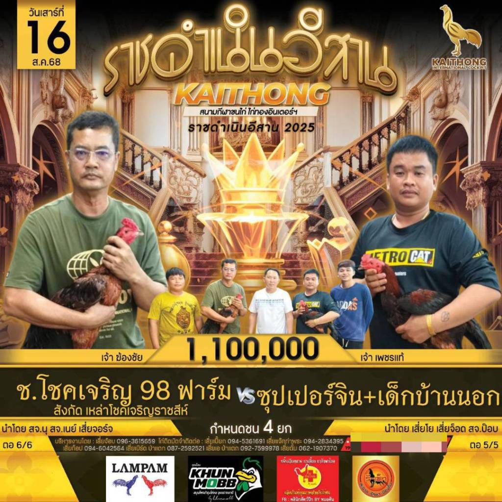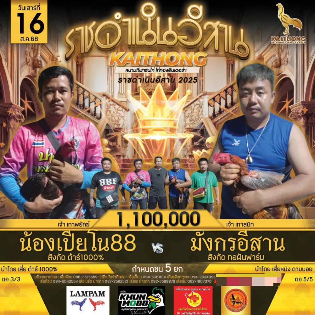 สนามไก่ชนทองอินเตอร์ วันที่ 16 สิงหาคม 2568