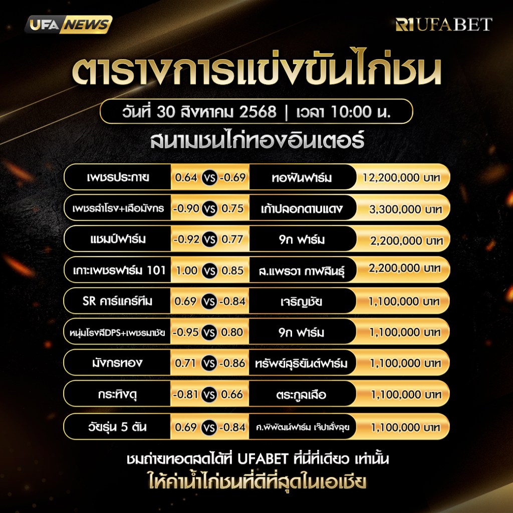 สนามไก่ชนทองอินเตอร์ วันที่ 30 สิงหาคม 2568