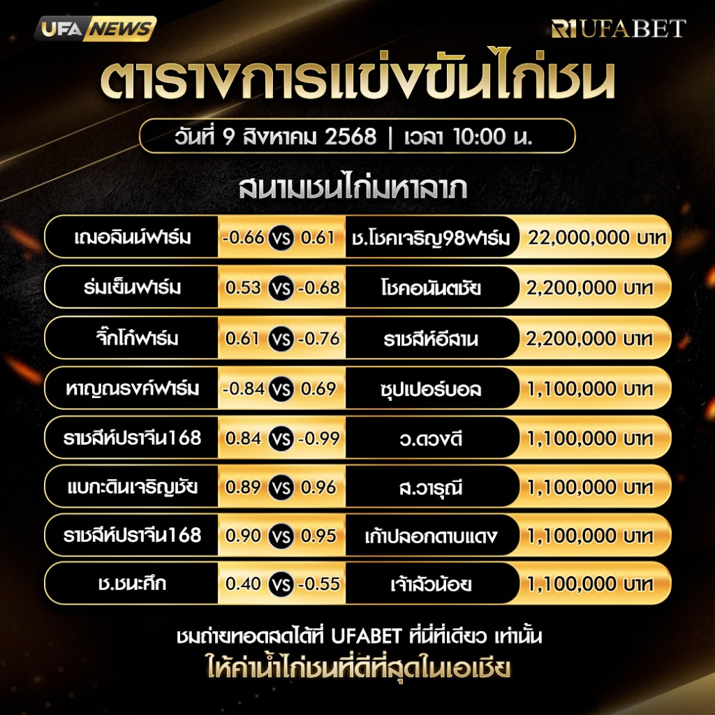 สนามชนไก่ มหาลาภ วันที่ 9 สิงหาคม 2568